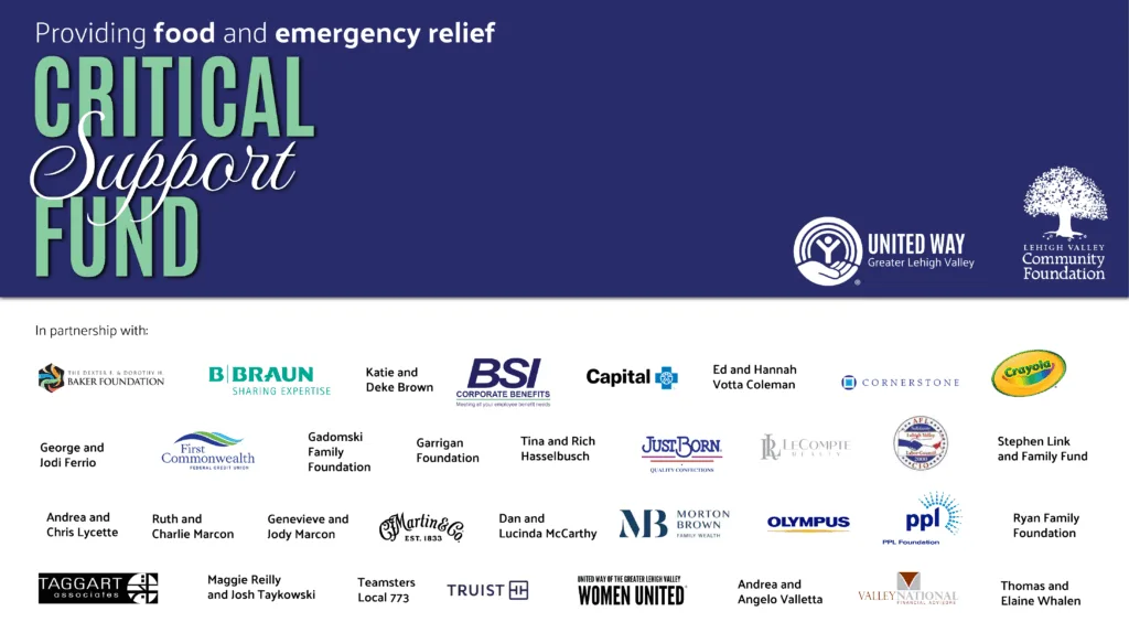 Together the Community Foundation, the United Way of the Greater Lehigh Valley and all of the generous donors noted below are working to ensure that the people in our area continue to get the food support they need.