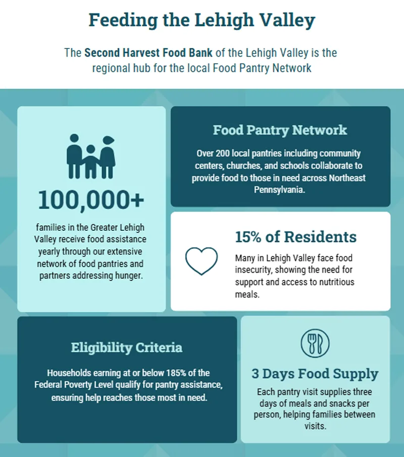In the Lehigh Valley, the charitable food network plays a vital role in ensuring food access, especially when household incomes, public benefits, or the economy fall short. At the center of this system is Second Harvest Food Bank of the Lehigh Valley and Northeast Pennsylvania (SHFB)—a regional hub affiliated with Feeding America, the nation’s largest hunger-relief network, representing more than 200 food banks across the country.